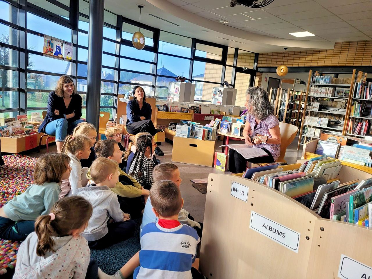 Après avoir répondu aux nombreuses questions des enfants sur son métier, elle leur a chanté quelques-unes de ses histoires en s’accompagnant au ukulélé.